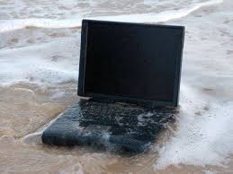 Coloca la laptop boca abajo para drenar el líquido remanente.